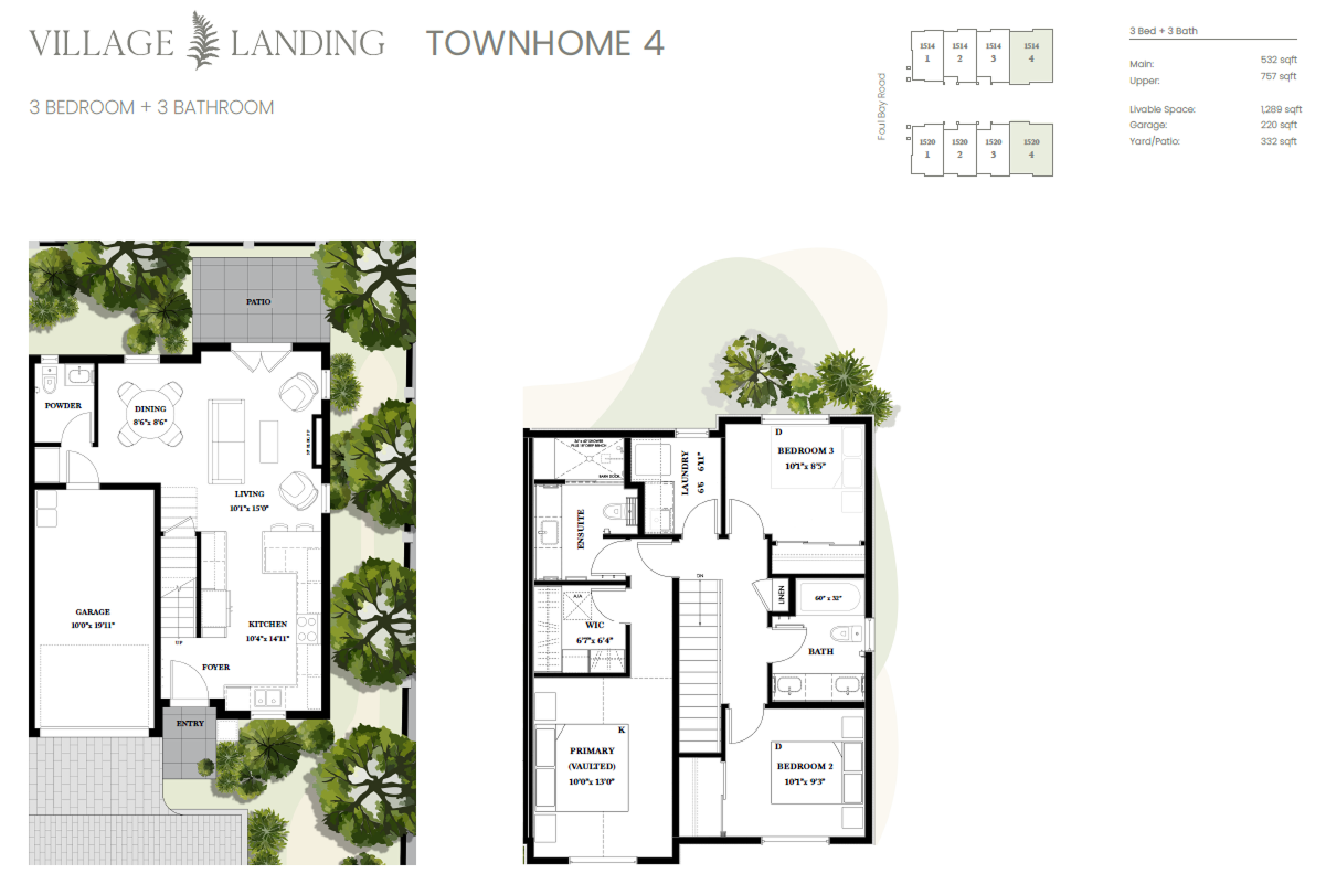 Excellence in energy savings! Village Landing is the first townhome development in the region to include solar panels and other energy-saving features. Using advanced energy modelling, each townhome achieves the Step Code 4, high standards of heating and cooling efficiency. Your own private garage is prewired for electric vehicle charging. Village Landing is rich in landscaping with new trees planted around the site and a riparian rain garden to feed a rich abundance of foliage.