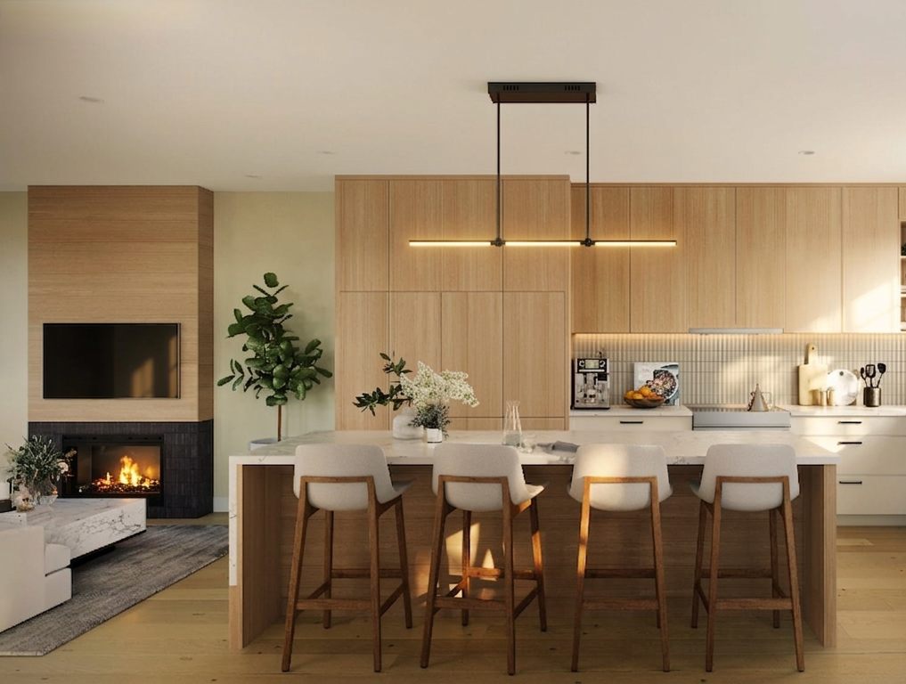Working with Zebra Design Group, we set out to create more than just another townhome. We wanted to craft forward-thinking homes that reflect this exceptional Oak Bay Village location. With natural wood finishes, tall entrance doors, central heating and cooling, energy-efficient construction, and rooftop solar, every detail at Village Landing was chosen to create homes that feel warm, elevated, and welcoming.